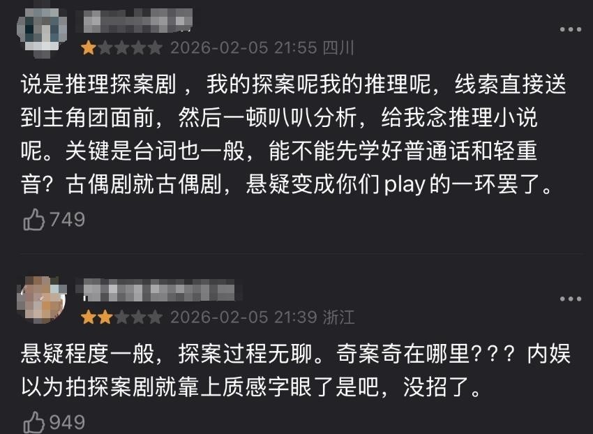 大量观众反馈:“要不是案件本身够硬核,前三集就弃剧了”“点开预告片就被两位主演的微表情劝退”。