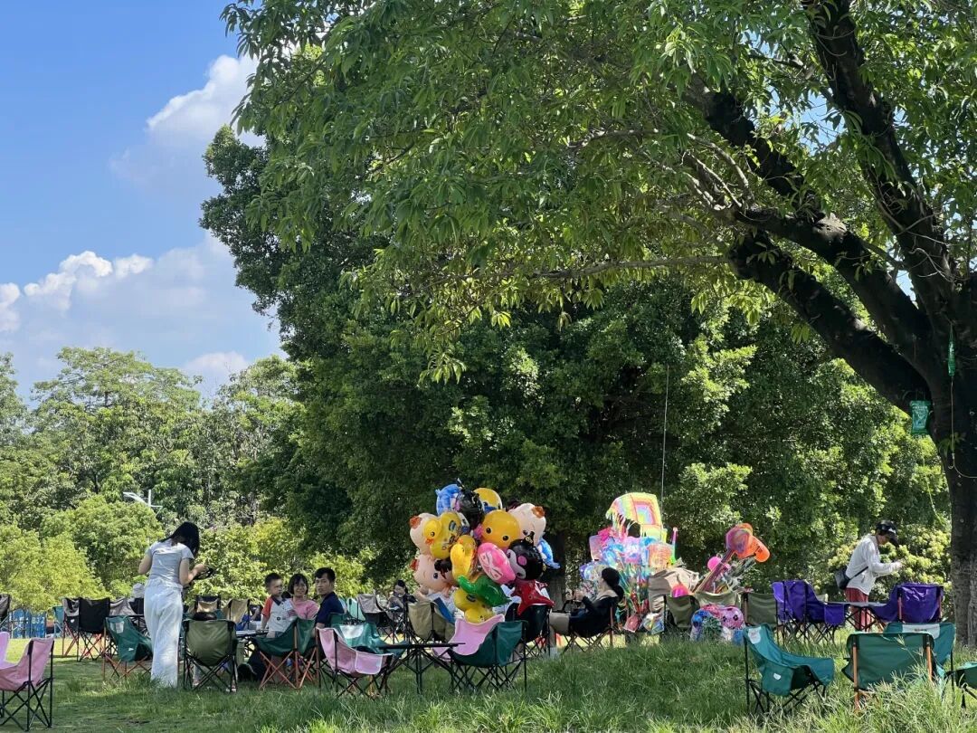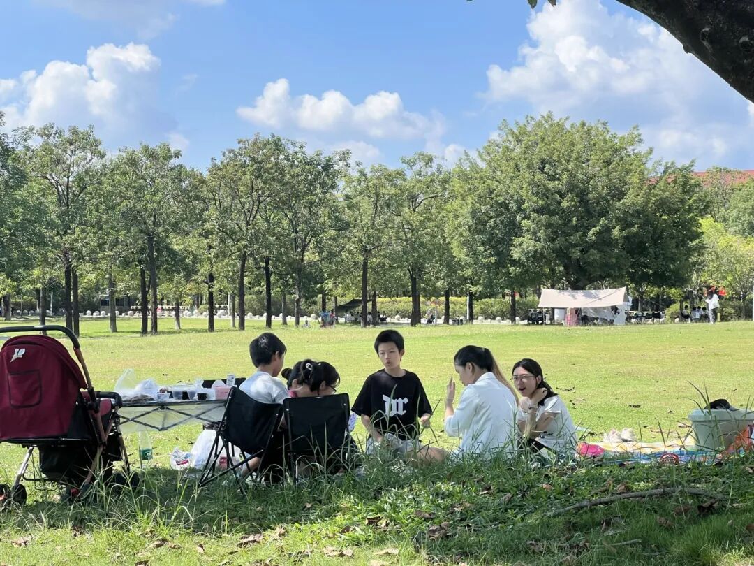 市民们解锁了多样休闲方式:有人沿着湖边步道悠闲散步,沉浸式感受湖光山色;有人带着帐篷找片树荫扎营,伴着鸟鸣享受静谧;更多家庭则投身亲子互动,做游戏、玩泡泡,阵阵笑声在公园里回荡。“这里环境好、空气清新,一家人出来放松太舒服了!”市民张先生望着尽兴玩耍的孩子,脸上满是满足,“平时工作忙,这样的闲暇时光特别珍贵。”
