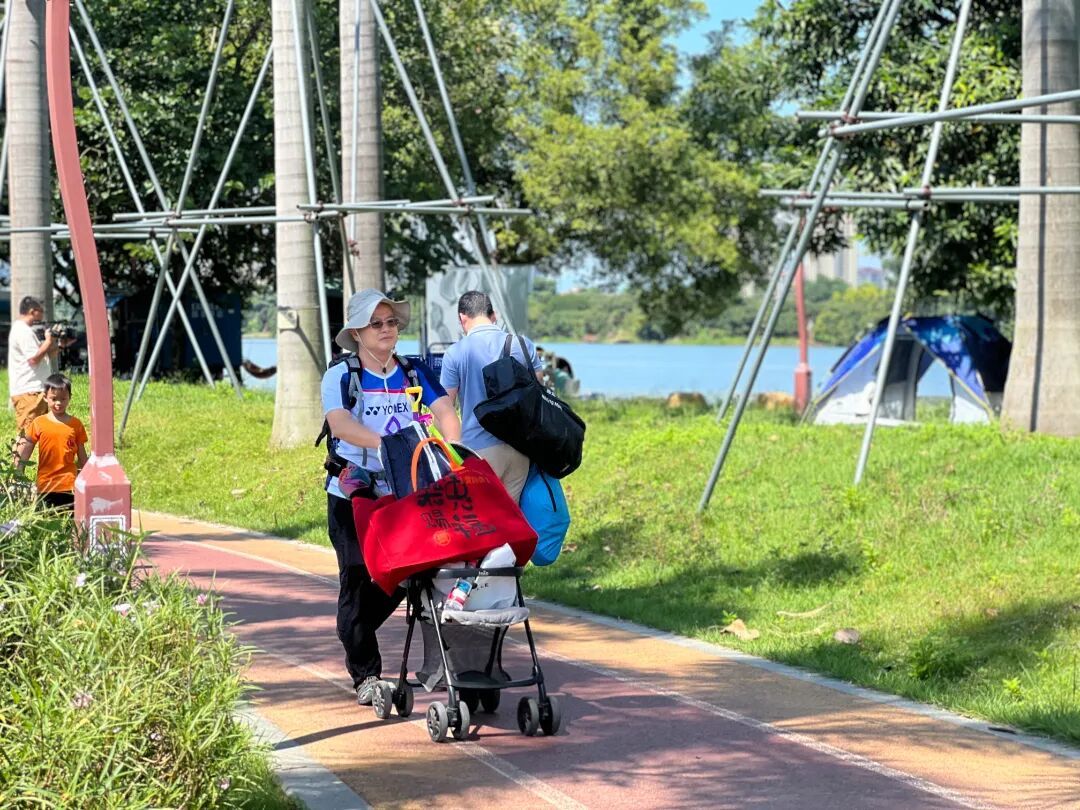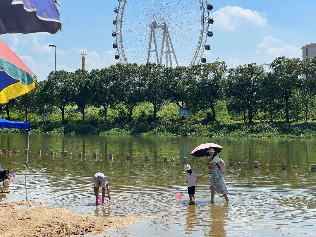 不少市民在沙滩上搭起遮阳棚,孩子们挖沙戏水、追逐嬉戏,大人们则围坐在草坪上野餐闲谈,享受秋日暖阳的惬意。来自黄埔区的冯女士已是第二次自驾前来:“这里不仅风景好,游玩设施也很齐全,是周末遛娃的理想之地。”