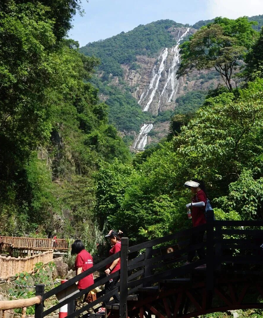 白天,游客沿着山道向上攀登,不仅能欣赏到落差428.5米的白水仙瀑壮丽景观,还能参与寻仙集印打卡等互动活动。“带孩子爬山确实不容易,好几次他都喊累,但坚持下来真的很值得!”带着五岁半儿子登山的陈女士感慨道,“当他亲眼看到瀑布的那一刻,眼睛都亮了——那不只是开心,更是被大自然深深震撼。这一趟,再累也值了。”